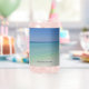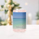 Make your beach town business stand out with this cute custom can glass. Add your company information on the beautiful sand under the teal blue ocean waves of this pretty seaside photography. Great advertising glasses for a travel agency or coastal town bar.