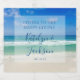 This beautiful beach wedding sparkling wine label features a gorgeous photo of the ocean waves for a destination wedding. Pretty beach photography paired with elegant white and blue typography creates a chic, modern look for a tropical island event. Lovely personalised seaside labels.