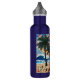 Beach art water bottle. An impasto oil painting style ai illustration of a beach full of palm trees, sea glass, sea shells and ocean waves at sunset. A bright colourful mesh of colours make this coastal art vibrant and beautiful!
