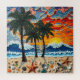 Beach art puzzle. An impasto oil painting style ai illustration of a beach full of palm trees, sea glass, sea shells and ocean waves at sunset. A bright colourful mesh of colours make this coastal art vibrant and beautiful!