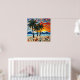 An impasto oil painting style ai illustration of a beach full of palm trees, sea glass, sea shells and ocean waves at sunset. A bright colourful mesh of colours make this coastal art vibrant and beautiful!