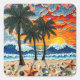 Beautiful Beach Scene with Palm Trees Square Sticker