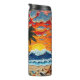 Beach art tumbler. An impasto oil painting style ai illustration of a beach full of palm trees, sea glass, sea shells and ocean waves at sunset. A bright colourful mesh of colours make this coastal art vibrant and beautiful!