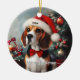 Beautiful Beagle with Santa Hat Ceramic Tree Decoration