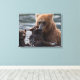 This is a Beautiful Bear and Her Cubs in the Water Wrapped Canvas Print