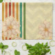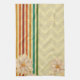 Beautiful Beige Flowers And Colourful Stripes Tea Towel
