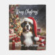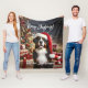 Beautiful Bernese Mountain Dog with Santa Hat Fleece Blanket