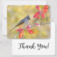 Beautiful grey bird, a tufted titmouse, on a branch with red leaves adorns this Thank You card. Customise with your own text or use the provided message.