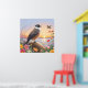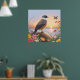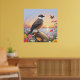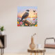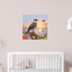 Colourful bird perched amidst blooms by a serene seaside at sunset, evoking tranquillity and natural beauty.