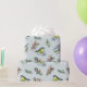 This pretty watercolor wrapping paper will be a favourite of anyone who studies birds or just enjoys feeding them and watching them out their windows. There are two types of birds here; one with a yellow belly, black wing feathers and a black cap on its head. The other is a grey and white bird. There are ferns, pine boughs and red berries all around that the birds are happily having an afternoon feast on. The background is a pale blue. Available in 3 different sizes.