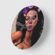 Beautiful Black African Woman Day Of the Dead Art Round Clock