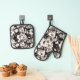 Beautiful black and light sepia tone floral oven mitt & pot holder set