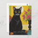 AI generated art of a beautiful black kitty with pink flowers in a black vase