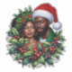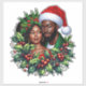 Beautiful Black man and black woman couple Holly Christmas wreath art large decal sticker