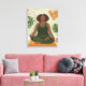Beautiful black curvy woman is meditating at home. She is relaxed and calm. She loves herself and loves the world around. She is beautiful externally and internally. The drawing is full of light, warmth and peace.