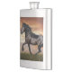 The product is a good size and came exactly as it was pictured. The lid is not attached to the flask, which could be dangerous on drunken nights... The print came out surprisingly well and looks very sharp. Would definitely recommend.