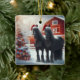 Beautiful Black Horses, Christmas Tree and Barn Ceramic Ornament