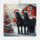 Beautiful Black Horses, Christmas Tree and Red Rustic Barn Ceramic Ornament