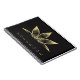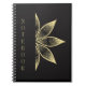 "Keep your thoughts, ideas, and notes organised in style with our black notebook featuring a simple golden flower design.