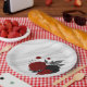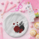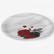 Beautiful black and red flowers with some grey leaves on silver grey marble background botanical wedding paper plates