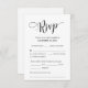 This is the Beautiful Script, RSVP (Respond) Enclosure Card, in Black font, where you can edit, change colour and format it as per your design requirement, with meal options, reserved seats, number attending and song request option.