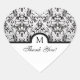 Elegant black and White Damask thank you heart Wedding Stickers.