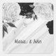 Beautiful black and white flowers with some grey leaves on silver grey marble background botanical sticker