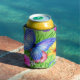 Beautiful Blue Butterfly with flowers Watercolor Can Cooler