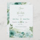 romantic blue flowers green leaves botanical save the date card