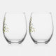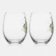 Beautiful Blue & Green Botanical Wedding Stemless Wine Glass