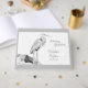 This wedding guestbook features a pencil sketch style drawing of a beautiful Great Blue Heron standing on rocks overlooking the water. All done in shades of grey, white and blue.