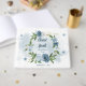 beautiful blue shades and white flowers with some green leaves botanical wreath guest book.