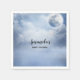 Paper napkins with a magical fantasy sky with fluffy blue clouds and a big beautiful moon. 2 white swans flying off together.