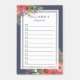 Floral to-do notepad with colourful flowers against a navy blue background. The to-do post-its feature a checkbox list with ten lines. The flowers are hand-drawn in orange, red, pink, blue, and white. Add your name at the top!