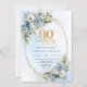 Beautiful Boho Dusty Blue White Flowers 90th Bday Invitation