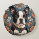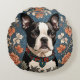 Beautiful Boston Terrier William Morris Inspired Round Cushion