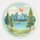 A vintage-style, souvenir image featuring Beautiful British Columbia.  In the image you can find mountains, forest, trees, a ferry, the Lion's Gate Bridge, water and the provincial flower: Pacific Dogwood.  A great retro image of Canada's BC.