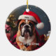 Beautiful Bulldog with Santa Hat Ceramic Tree Decoration