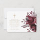 Beautiful Burgundy Floral Cross Baptism Thank You Card