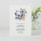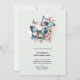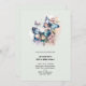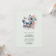 Birthday invitation with a trio of butterflies fluttering among some pretty flowers. Blue pink ad green colour scheme.