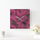 Beautiful Butterflies On A Pink Leaf Pattern Square Wall Clock