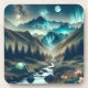 Beautiful Camping Scene with Mountains and Tent Coaster