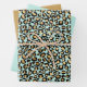A beautiful cheetah print sheet, this wrapping paper has a cheetah design on blue mint background, a blue wrapping paper and a golden one. Purchase yours today!