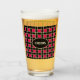 Beautiful black and red square chequered pattern glass. CHEERS text can be customised.