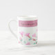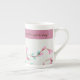 Pink watercolor floral designer china coffee mug with a touch of teal and chocolate. Personalise with your special message.