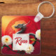 Chinese Dragon in 3D digital image with white peonies in front of a decorated background + yellow Chinese dragon ideogram and yellow "Year of the Dragon". Design on Square keychain with monogram or first name to personalise in back. Matching greeting card, postcard, sticker and more...