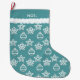 Beautiful Christmas pattern on teal background Christmas stocking. Name can be personalised.
