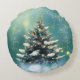 Beautiful Christmas Tree with Snow and Gold Lights Round Cushion