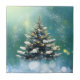 Beautiful Christmas Tree with Snow and Gold Lights Tile