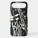 A pretty iPhone 6 case for all music lovers. It features a beautiful photograph of a clarinet. You the text at the top.